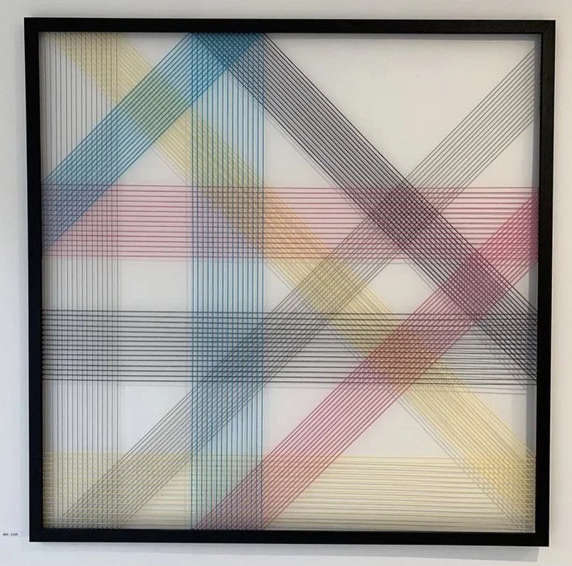 Kate Beaumont, local designer, uses different coloured wool on a frame to create patterns and shapes in the positive and negative space.