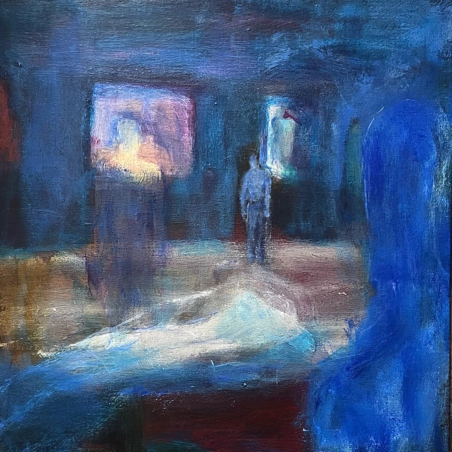 Through experimenting with colour and light, alongside an exploration in pushing different shades of blue, Oliver Morris’ paintings are informed by their personal experience and external environment. They often feature motifs of buildings and domestic items, warped and manipulated through his painting exploration.