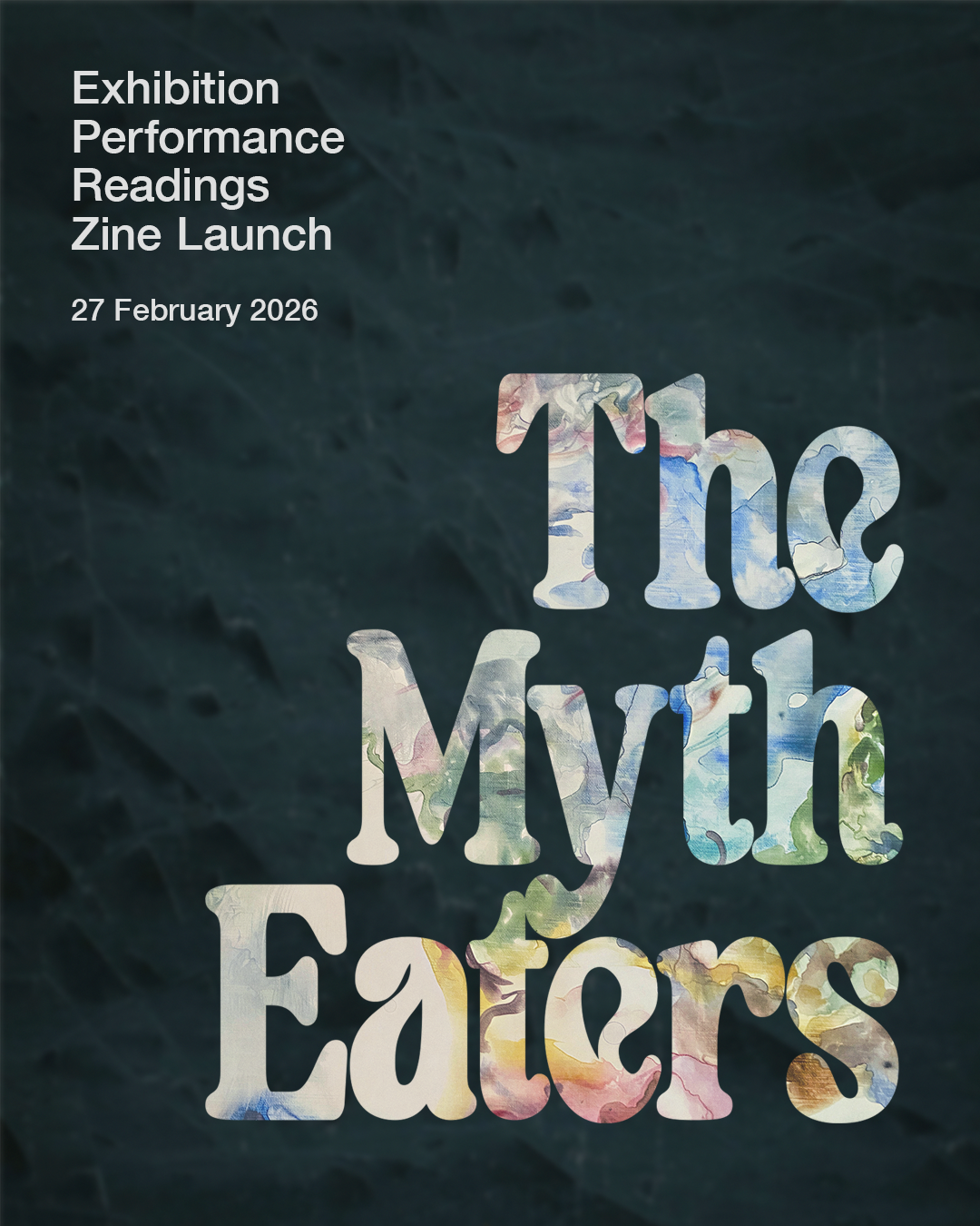This zine brings together poetry and fragments of text that echo and resonate with the themes of Kate Howe’s RUPTUREXIBIT residency, The Myth Eaters, December 2025 - March 2026.