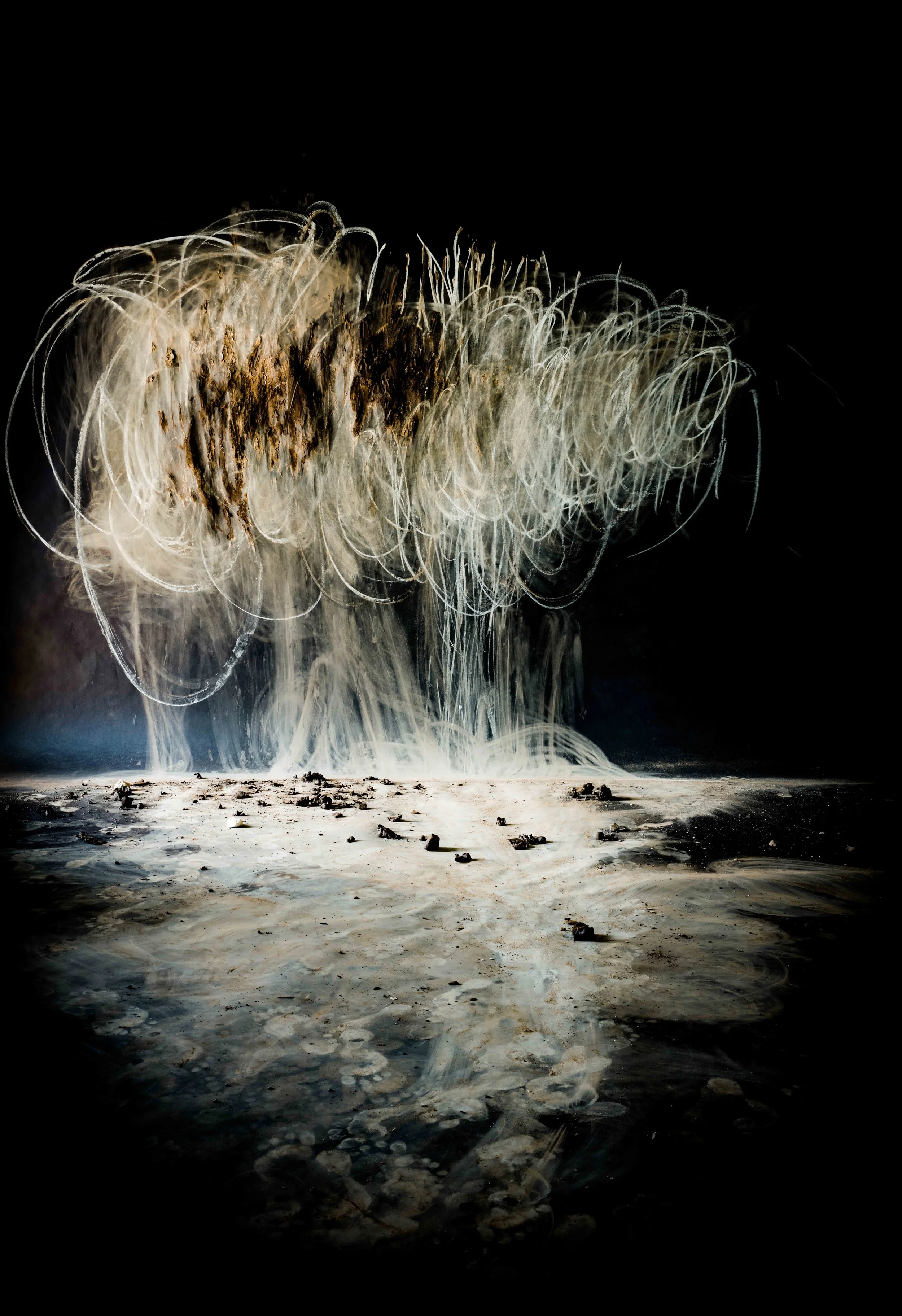 Elsewhere, Sharyn Wortman, 2023. Large room-sized installation created with raw clay and chalk on paper. Archival print, edition of 5 + 2 AP, 160 × 214 cm.